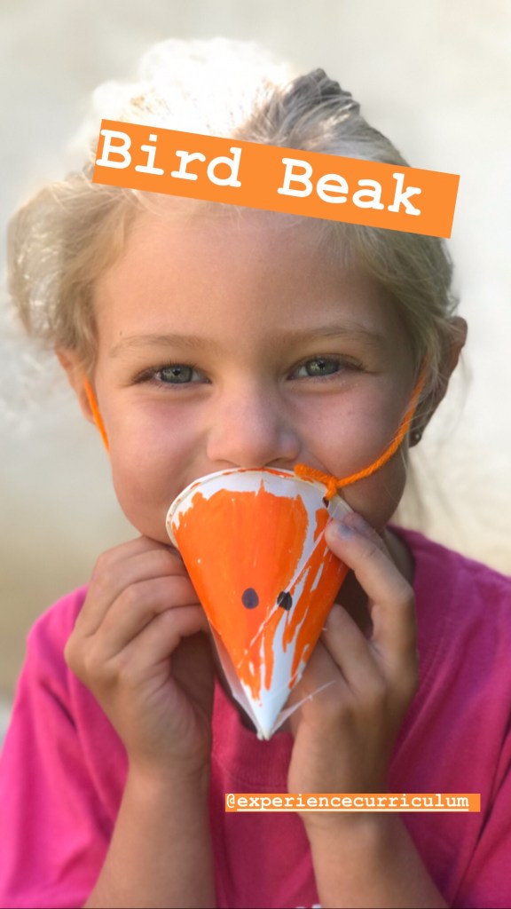 Our favorite activity of the week was making and playing with our bird masks. We pretended to be a bird we would hide in the bushes, fly around the yard and even pretend to catch a worm and eat it.