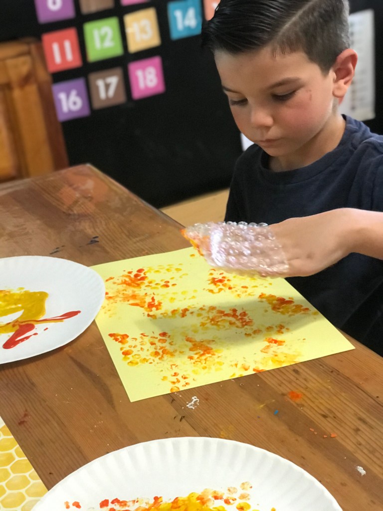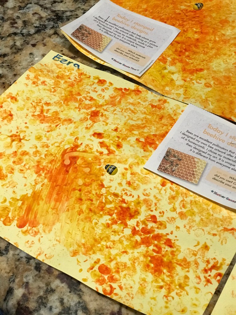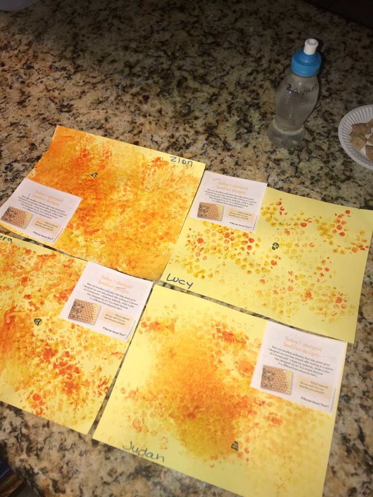 Bees are excellent pollinators that help plants grow. I designed my own bee artwork after looking at a picture of a honeycomb. I chose my materials, made a plan then designed my art.