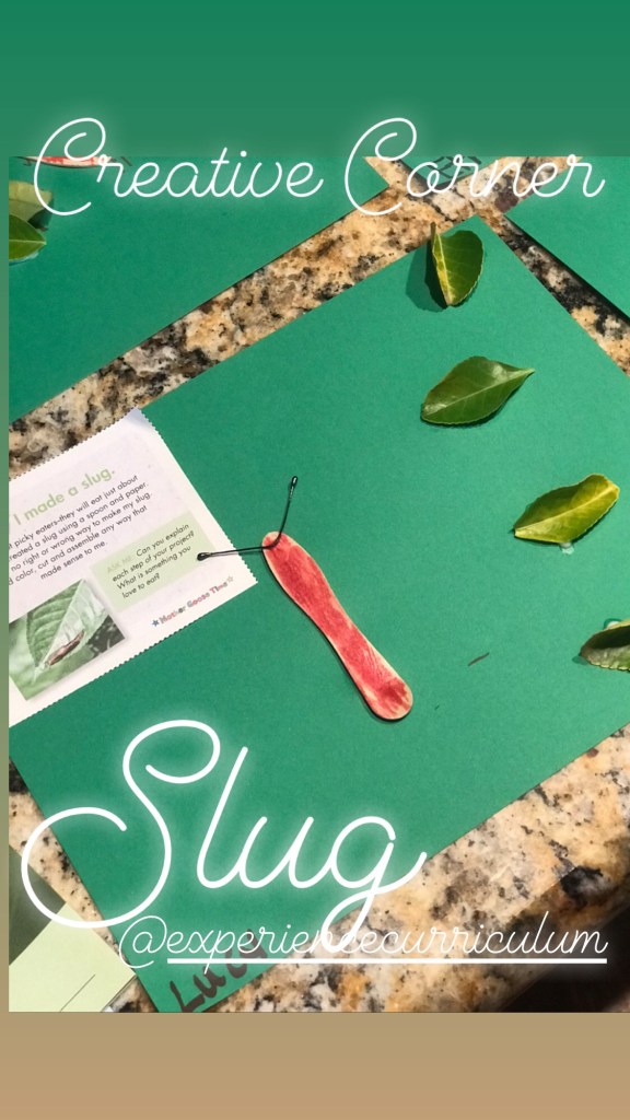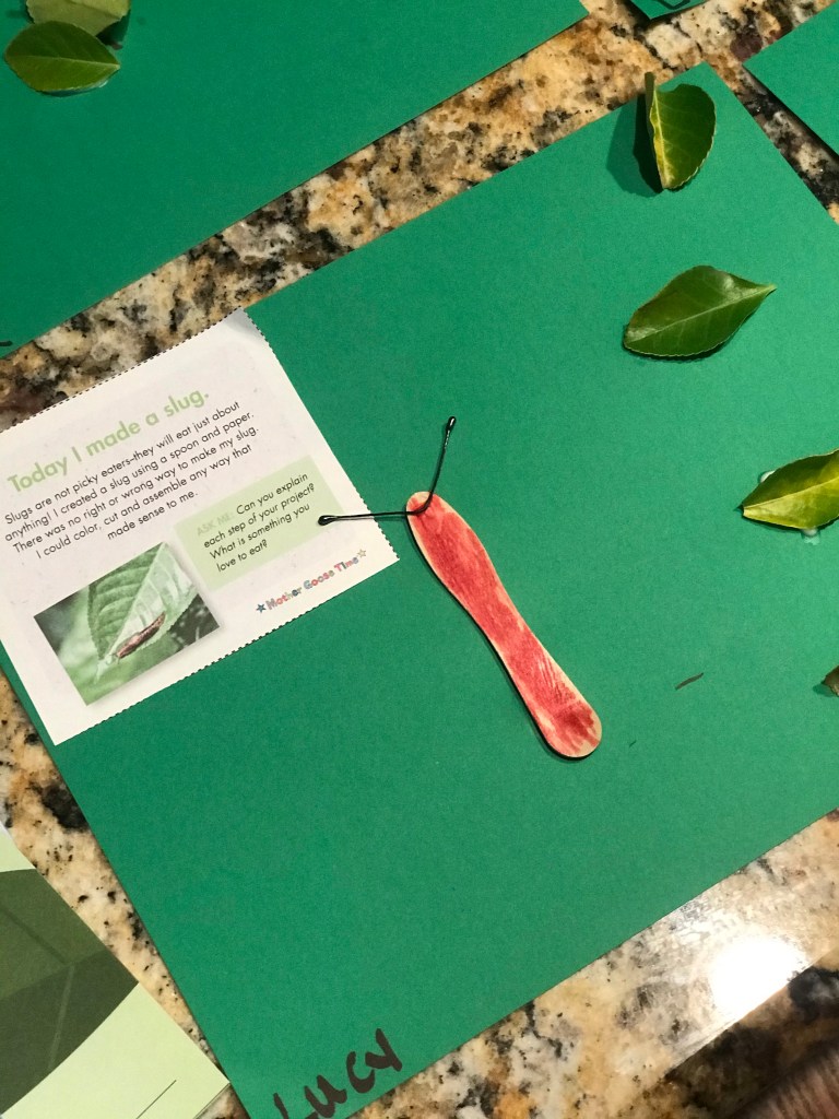 We loved learning about slugs! We discovered that when a slug slides across the ground he leaves a trail. They can also climb a vertical surface and even travel upside-down.