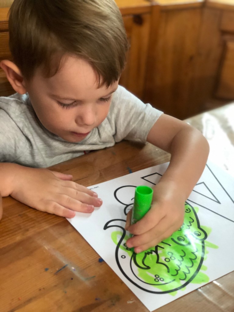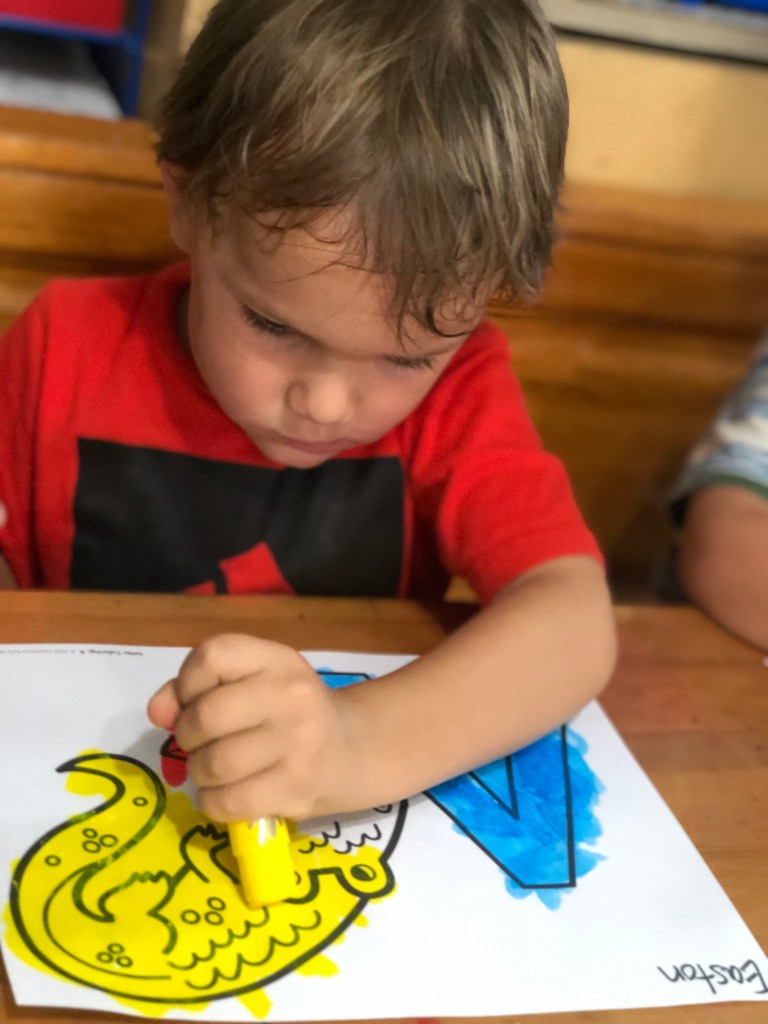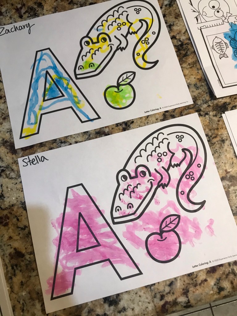 Table Top Literacy – we love these pages and look forward to coloring them and talking about our letter of the week. We talked about all of the things that could start with letter A.