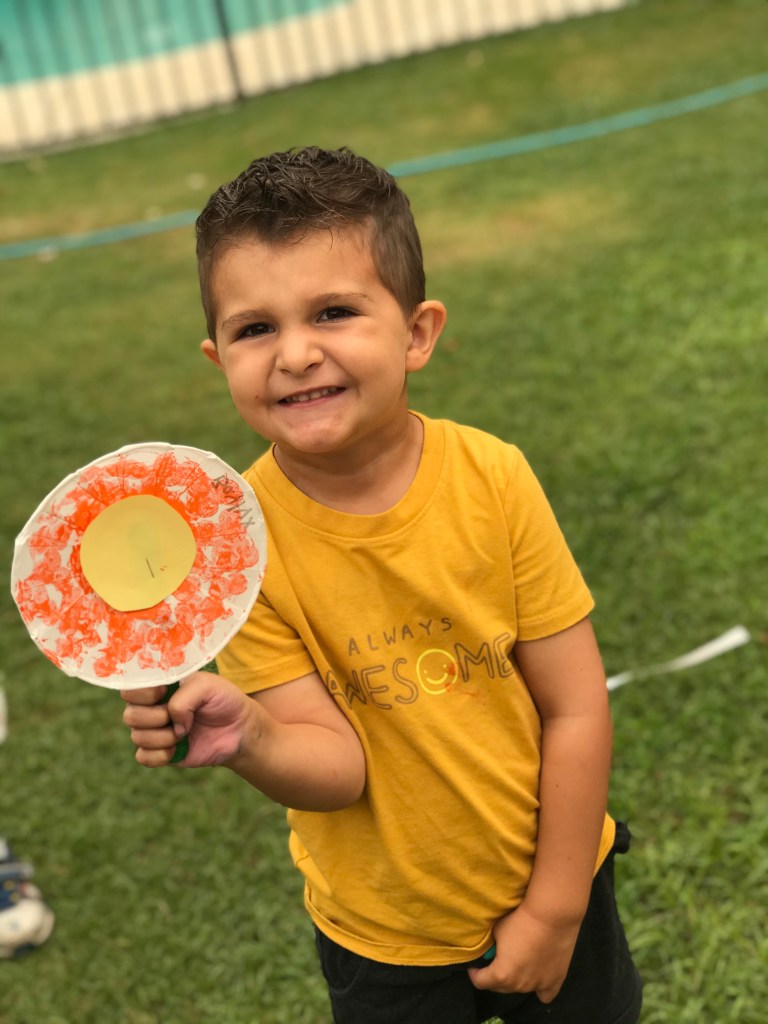 In our Creative Art flower designs we used our fine motor skills to color and attach our popsicle stick. We invited them to cut slits to look like flower petals and then went outside to plant them in the ground. I love the excitement that they show in the activities and the questions. Questions of the day was ” What plants do you know that smell?”. They answered all plants so we walked around our neighborhood to smell plants and discovered not all plants or flowers smell and some of them smell bad.