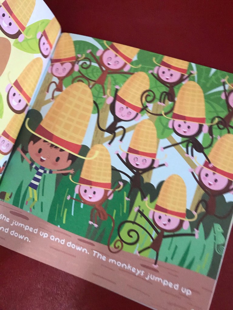 We read this book and enjoyed counting the hats and the monkeys in this book. What a fun engaging way to read and remember what happened in the story. They even remembered some of it a few days later. Our Experience Early Learning Curriculum book are the best books we have had. They are full of color and the stories are great.