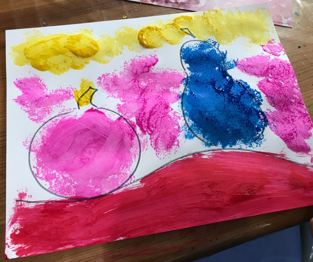 Painting with dots is called pointillism. As Lucy and Paisley painted they tried to count the amount of dots it took to fill their paper. They were so proud of their art! I gave them an opportunity to paint what they would like but they wanted their art to look like the example.