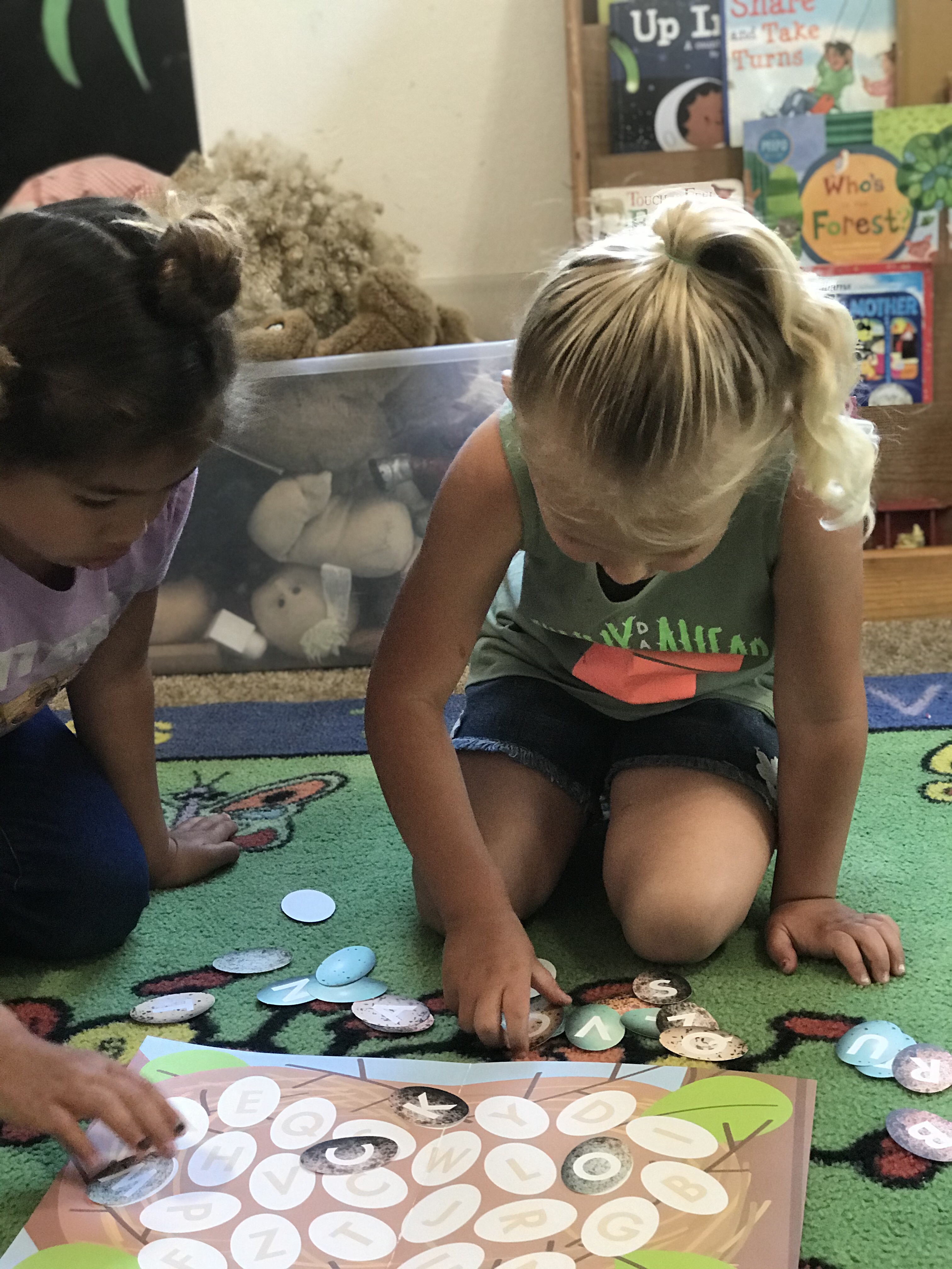 Experience Early Learning Curriculum is creative in the activities they provide by making games that are fun. What a great way to build upon the skills we are learning . In this activity they had to match the alphabet egg to the eggs in the nest. This works on fine motor skills, and reading concepts.