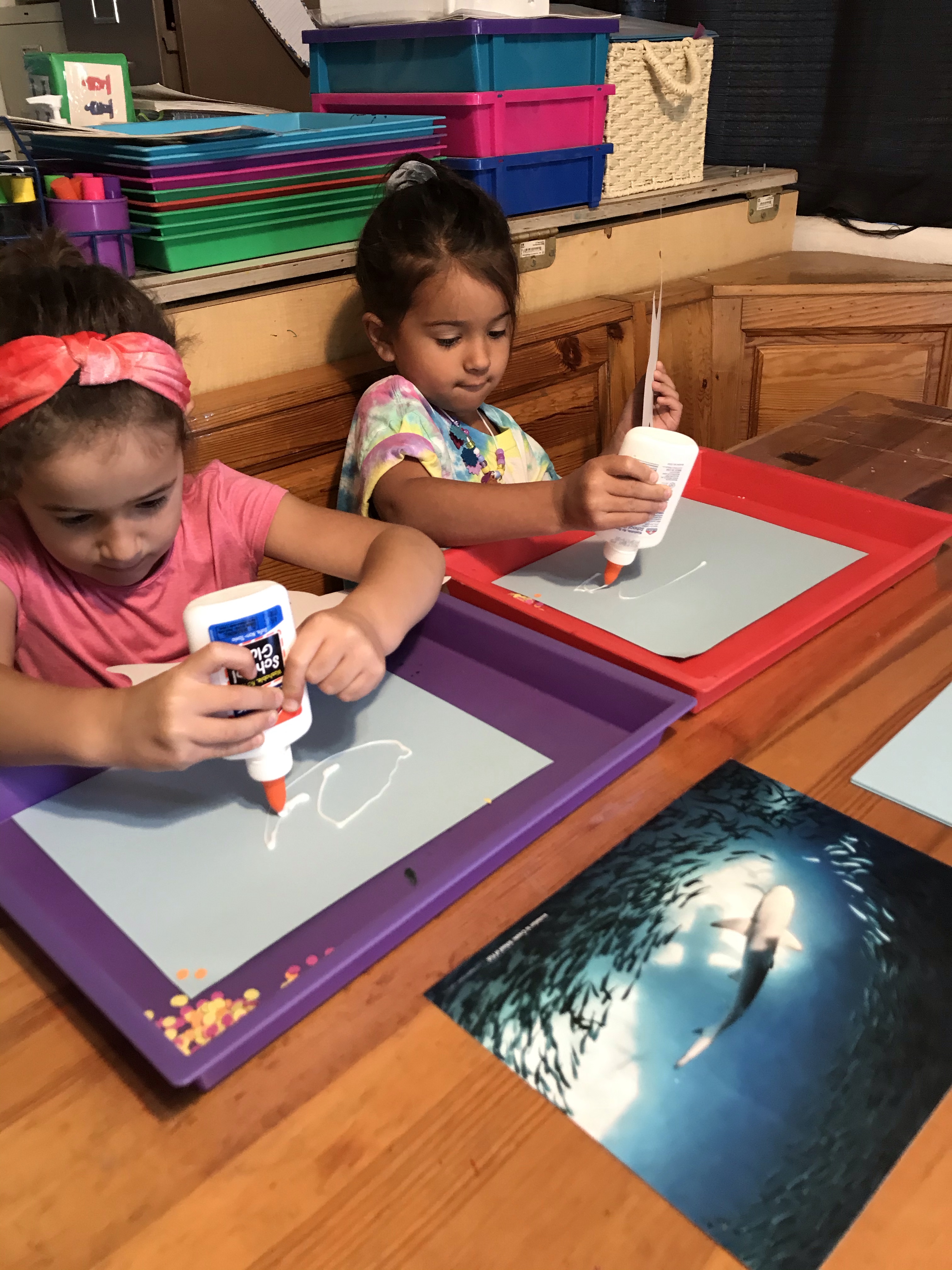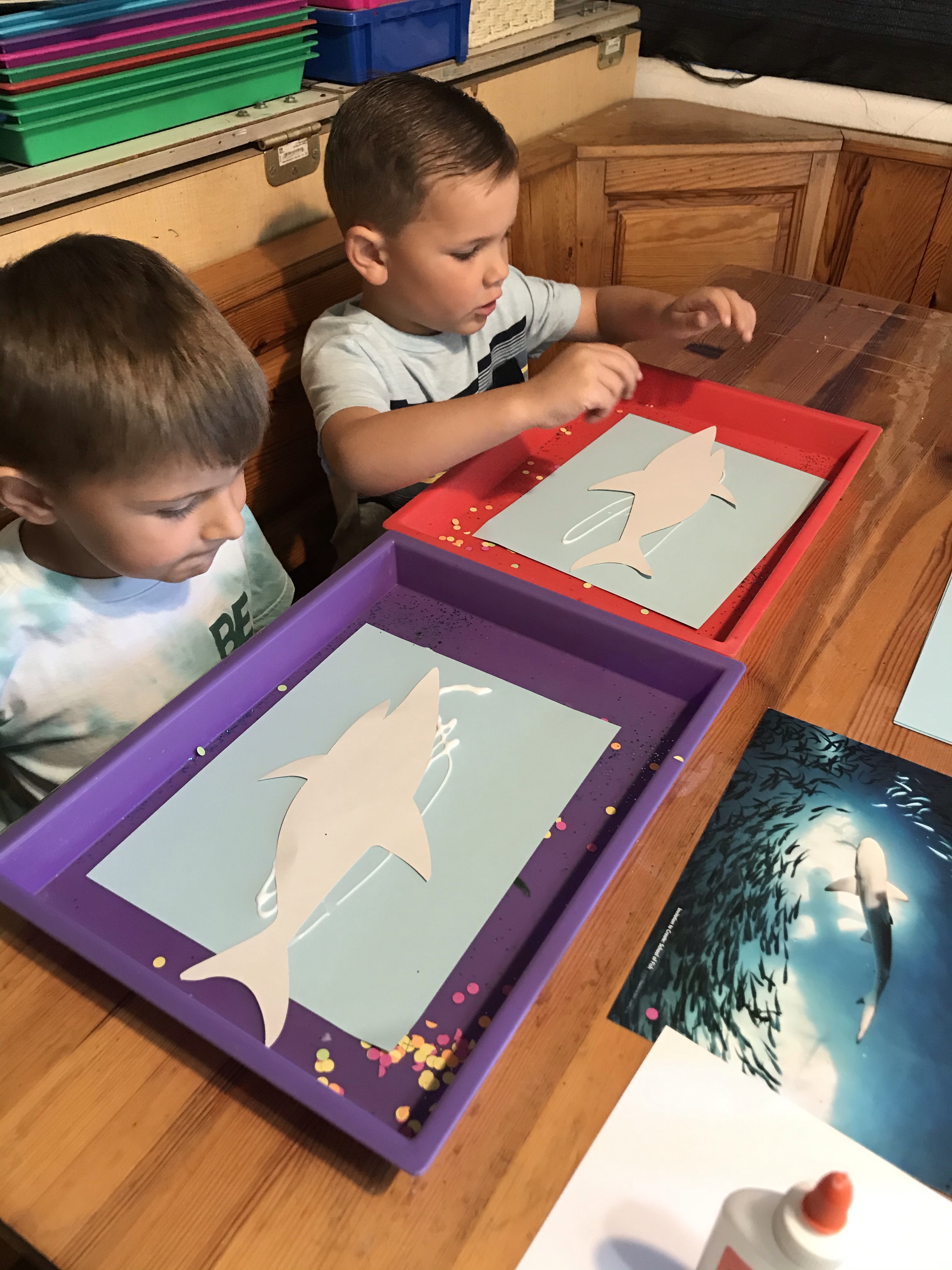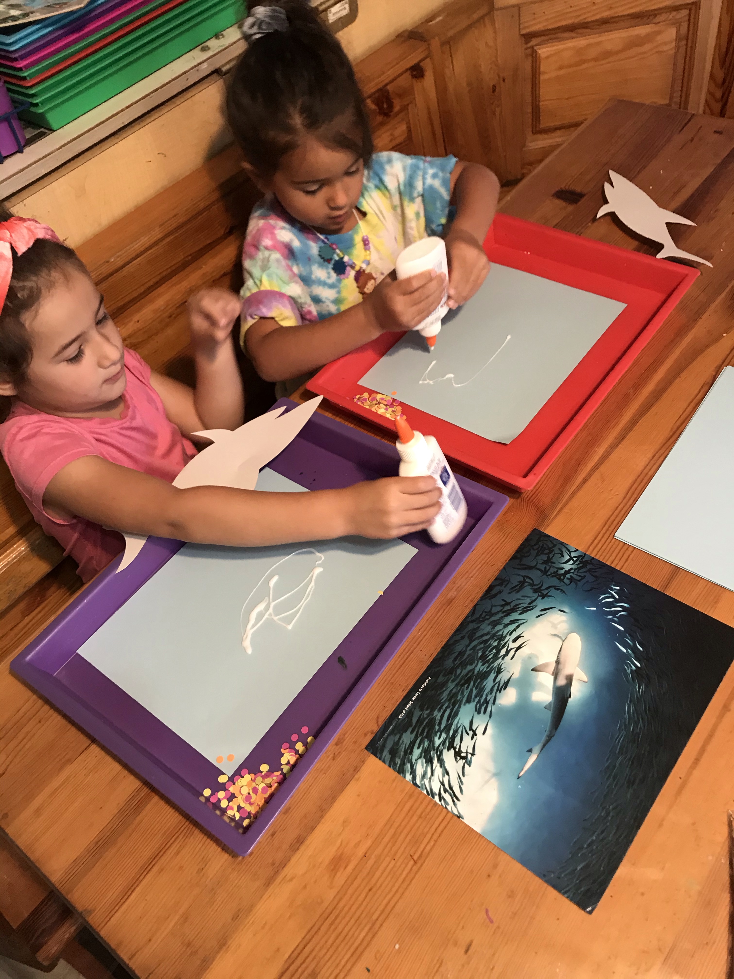 My kids favorite large animal of the ocean the SHARK! We learned that schools of fish often surround larger predators fish in the ocean.