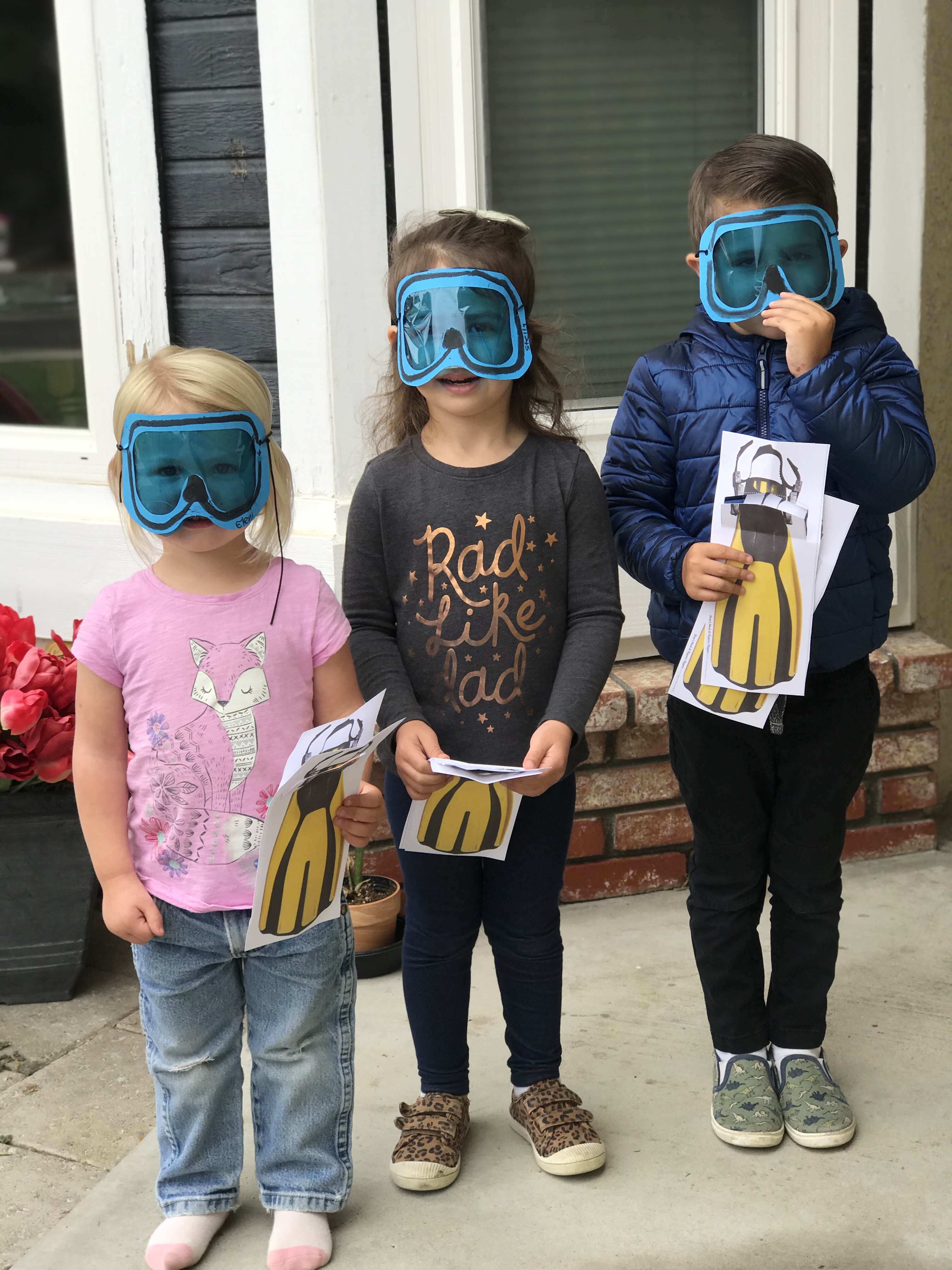 Creating a diver’s mask and flippers was a highlight of our week. We talked about how it would feel to be underwater and be able to breath. Our kids absolutely loved our mask’s and wore them around for hours.
