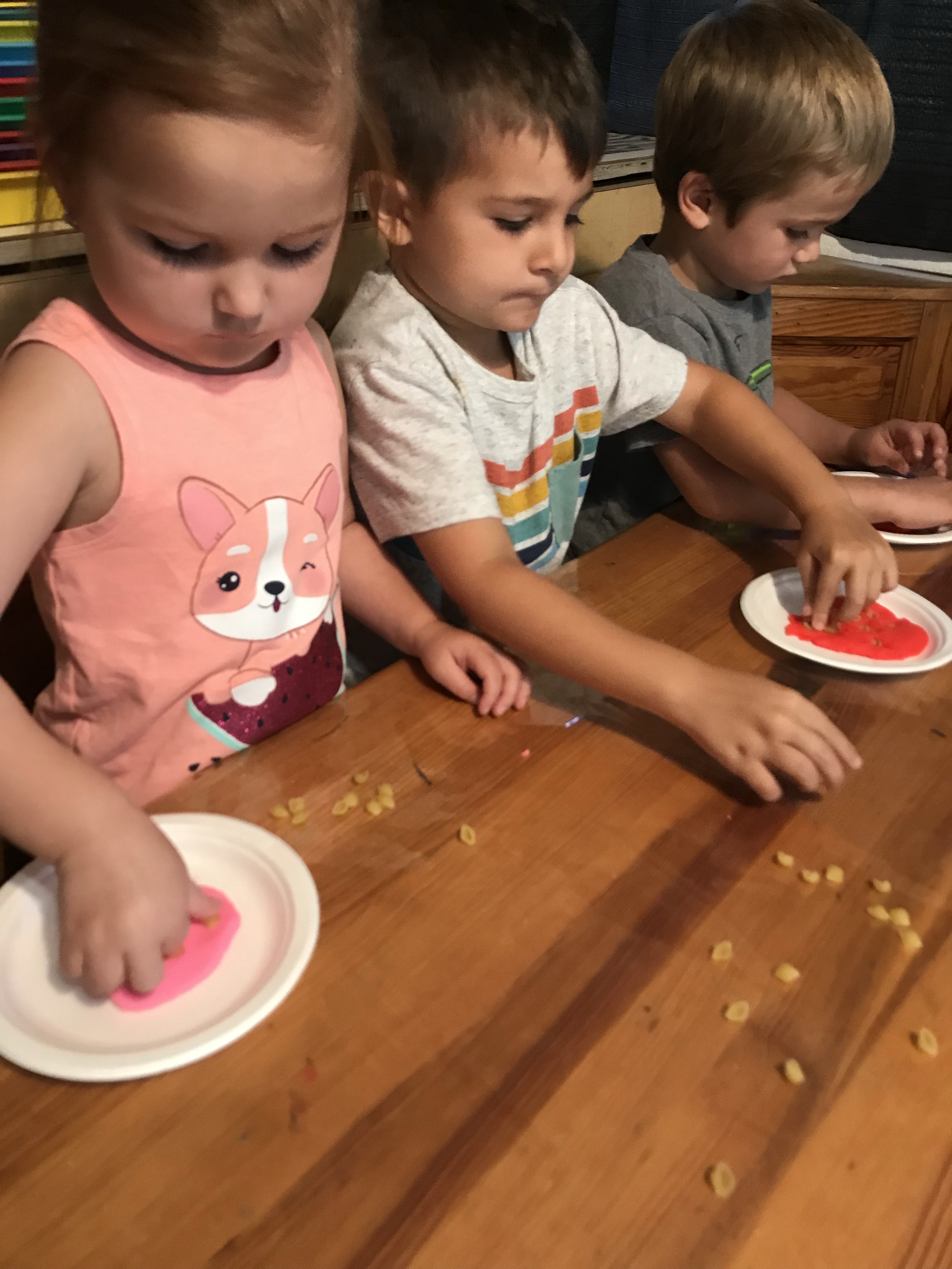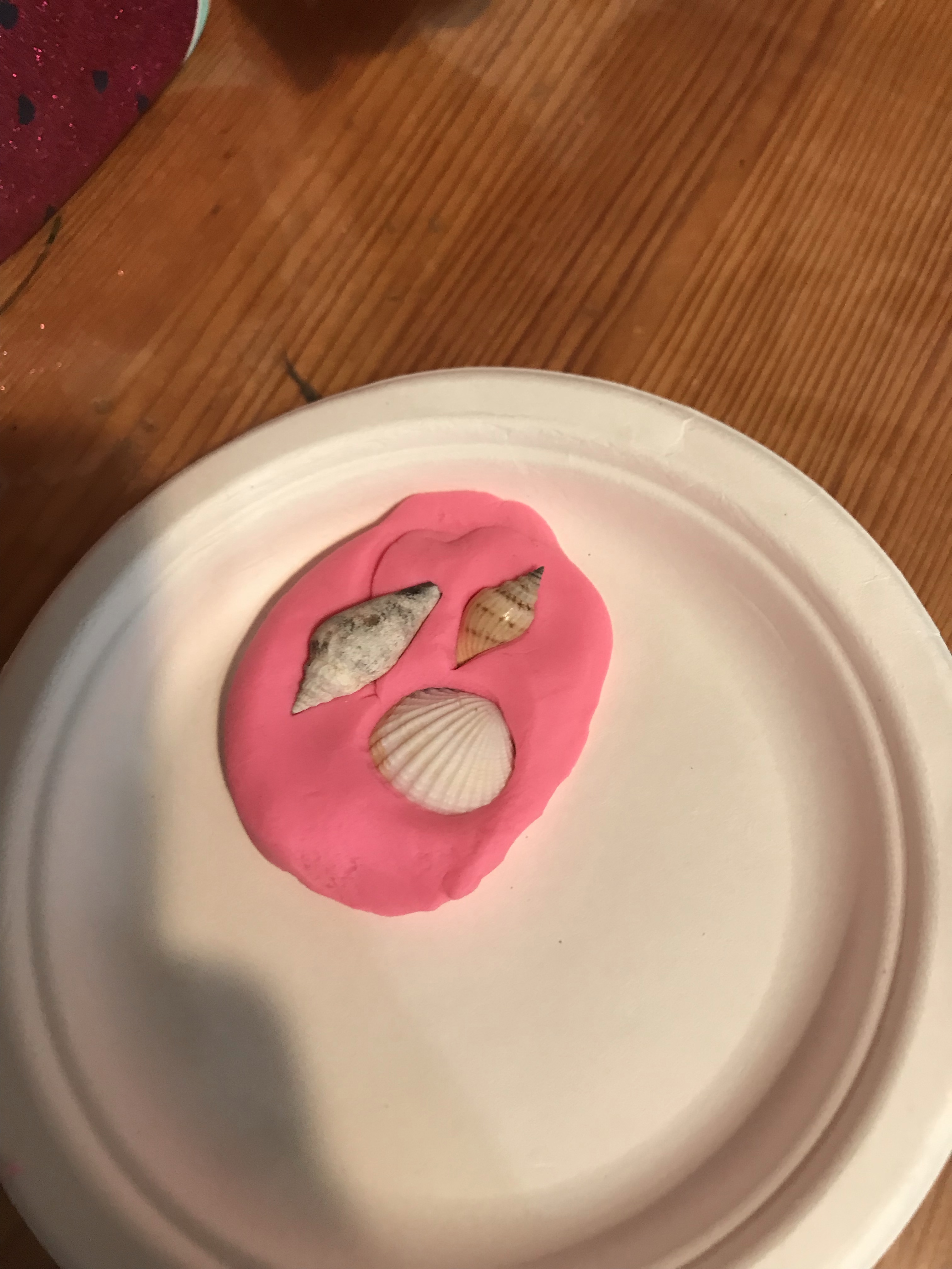 We used playdoh and shells to see what prints they would make. First we put them in the playdoh and pulled them out. But the kids wanted to put them in and leave them. They were proud of their masterpieces. This activity was great for fine motor skills . Fine motor skills, coordination and balance are essential for child development. The development of these skills can help with day-to-day activities, such as walking, play and learning. What a fun way to build on a skill that is so important to the children’s development.