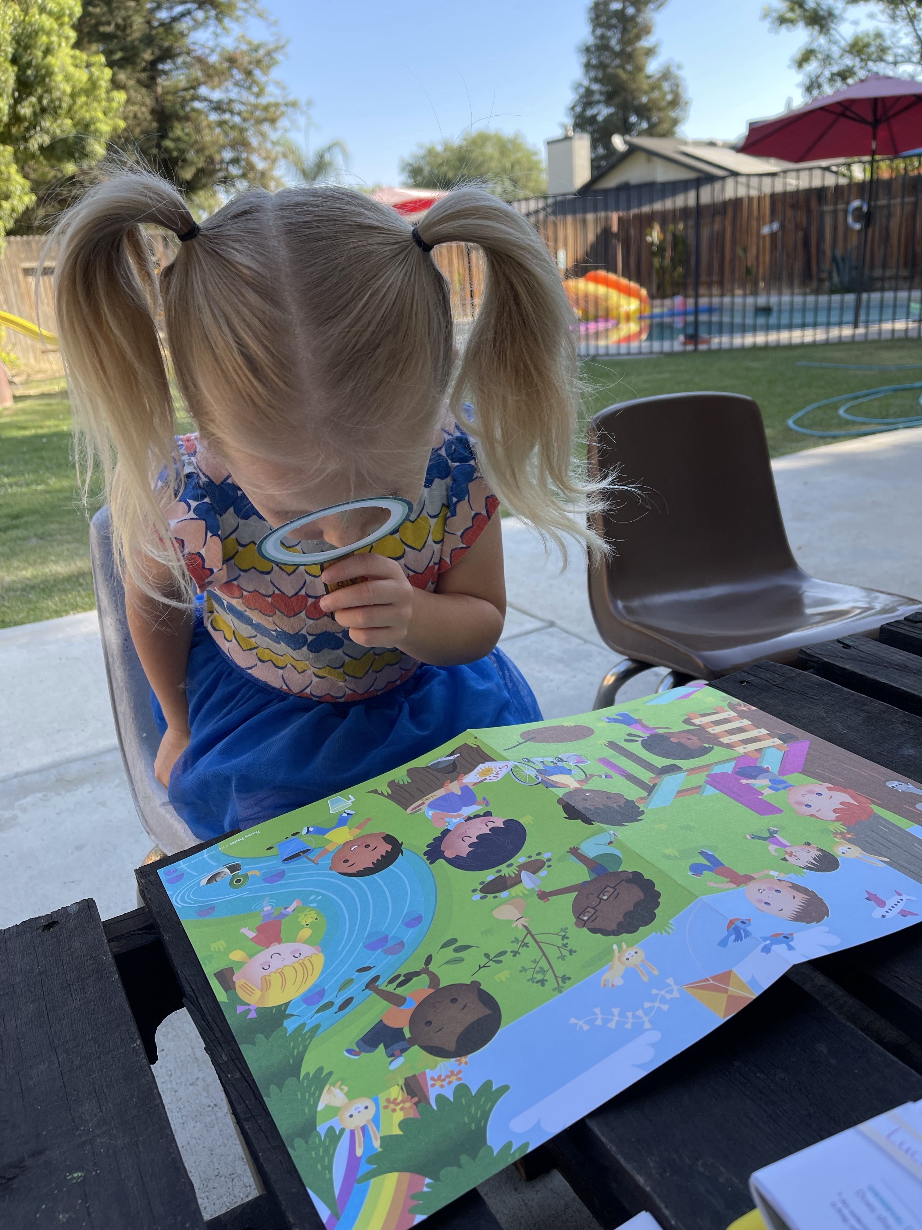 What would be something exciting to find outside? Discussing and exploring on our I spy search was a great way for our kids to work together on counting how many objects or animals he’s seeing. We enjoy these colorful pictures and enjoy working together to find and count the different object!