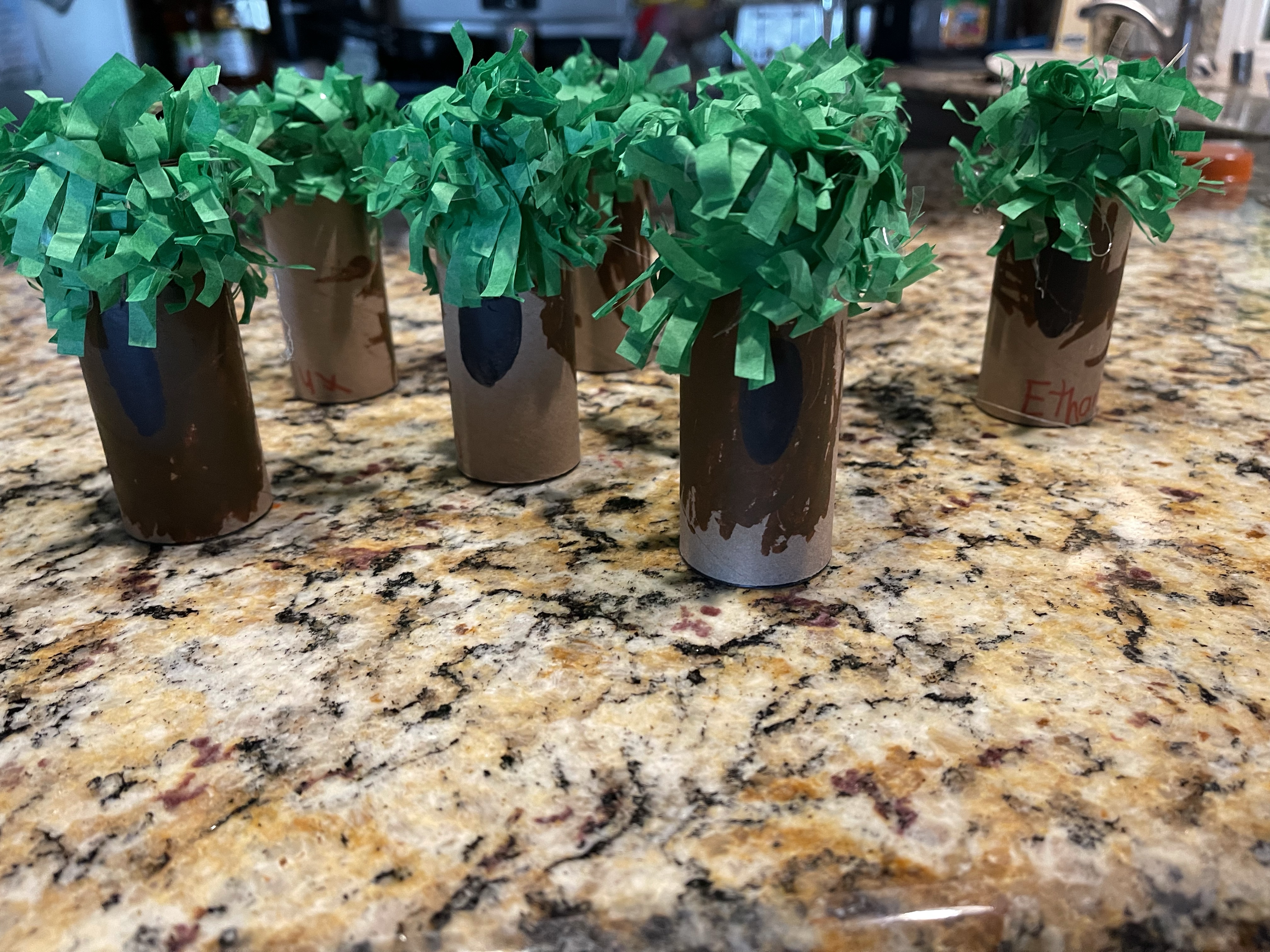 This activity was our favorite this week. We collected branches, acorns, and several nature items then fastened our tree together. We danced around the park shaking our trees! While putting together our Tree Shaker we discussed why trees are so important and what we can do to protect them.