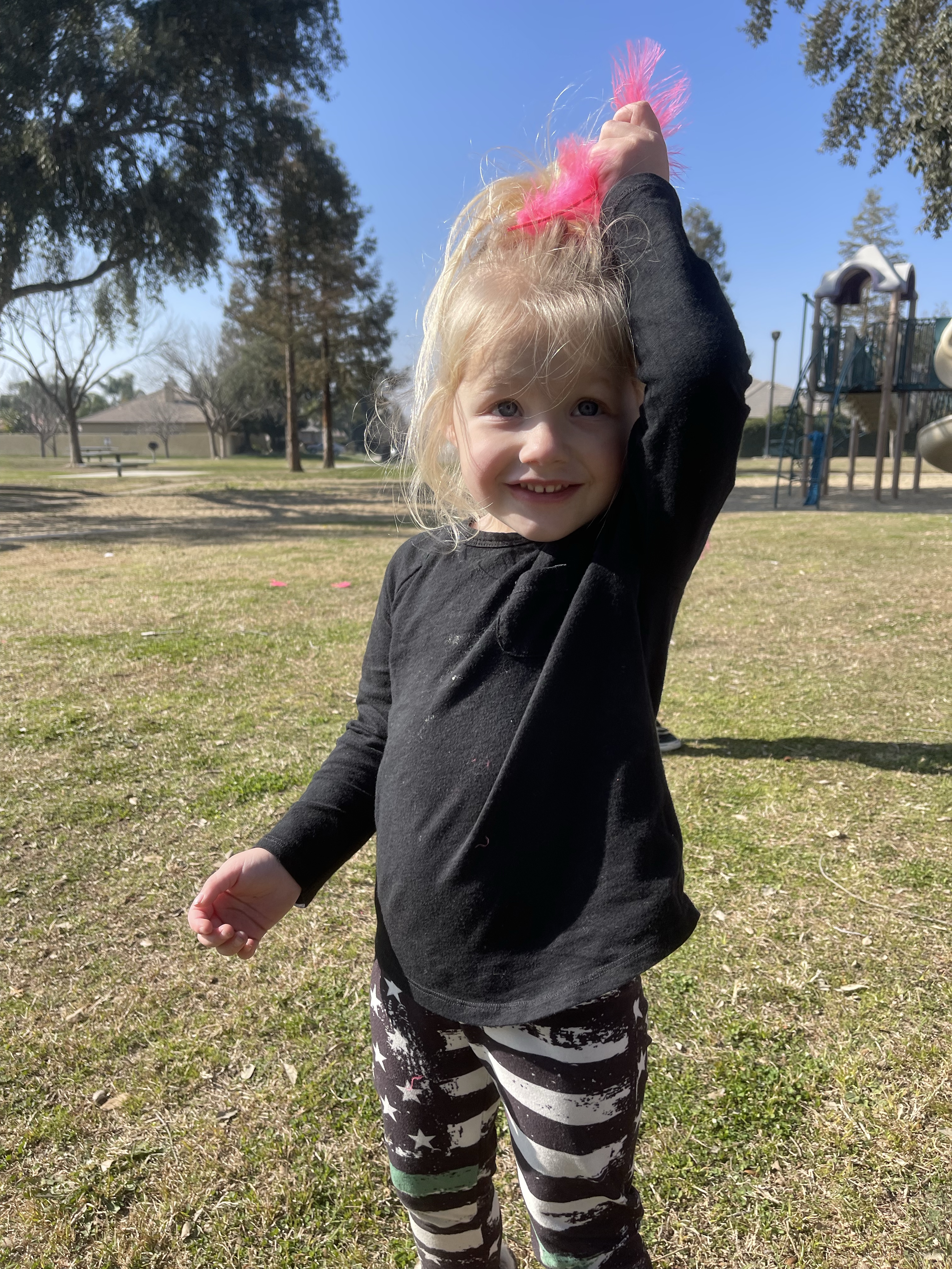 We gave each child a feather and encouraged the children to balance the feather somewhere on their bodies. We also enjoyed playing and throwing the feathers into the air and watching them float to the ground.
