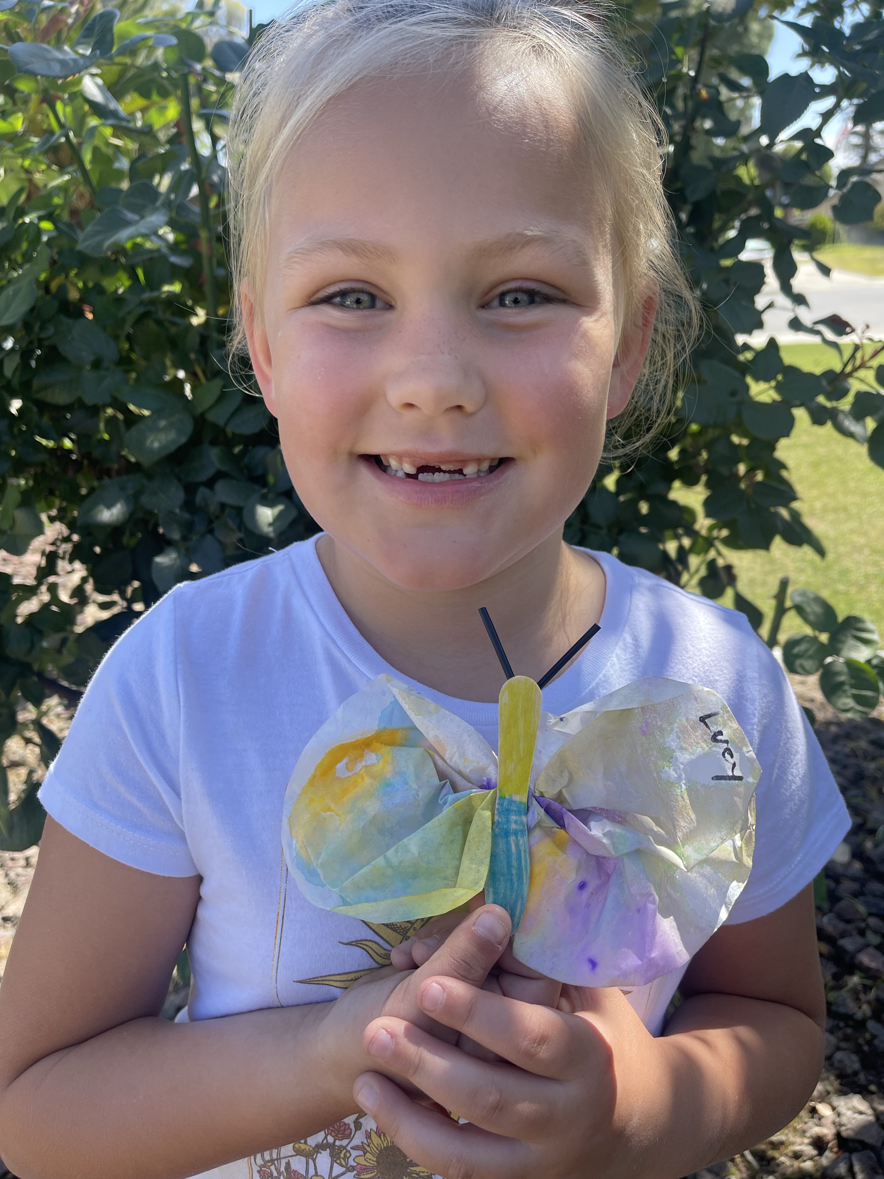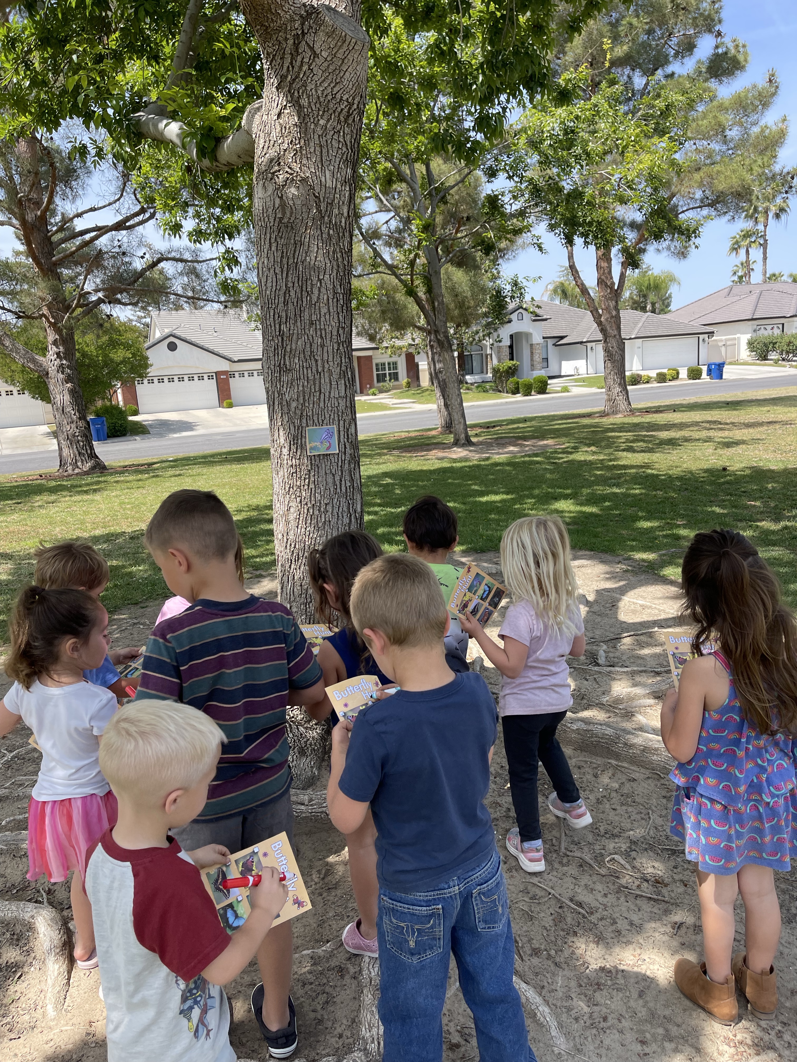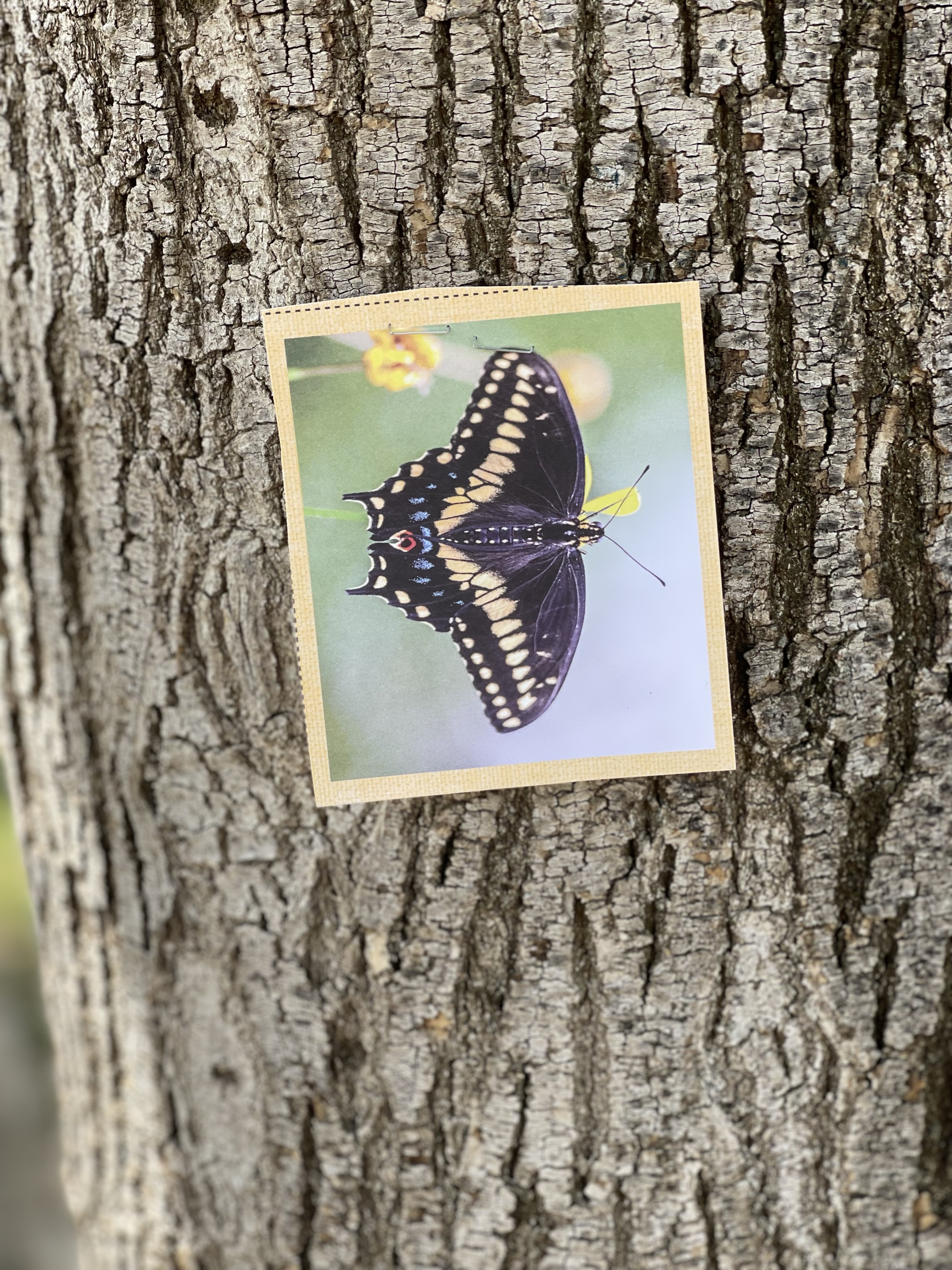 This was our kids’ favorite activity of the week we put the butterfly cards on trees around the park and gave our kids the butterfly hunt guide and a pencil. They went tree to tree identifying the butterflies and checking them off.