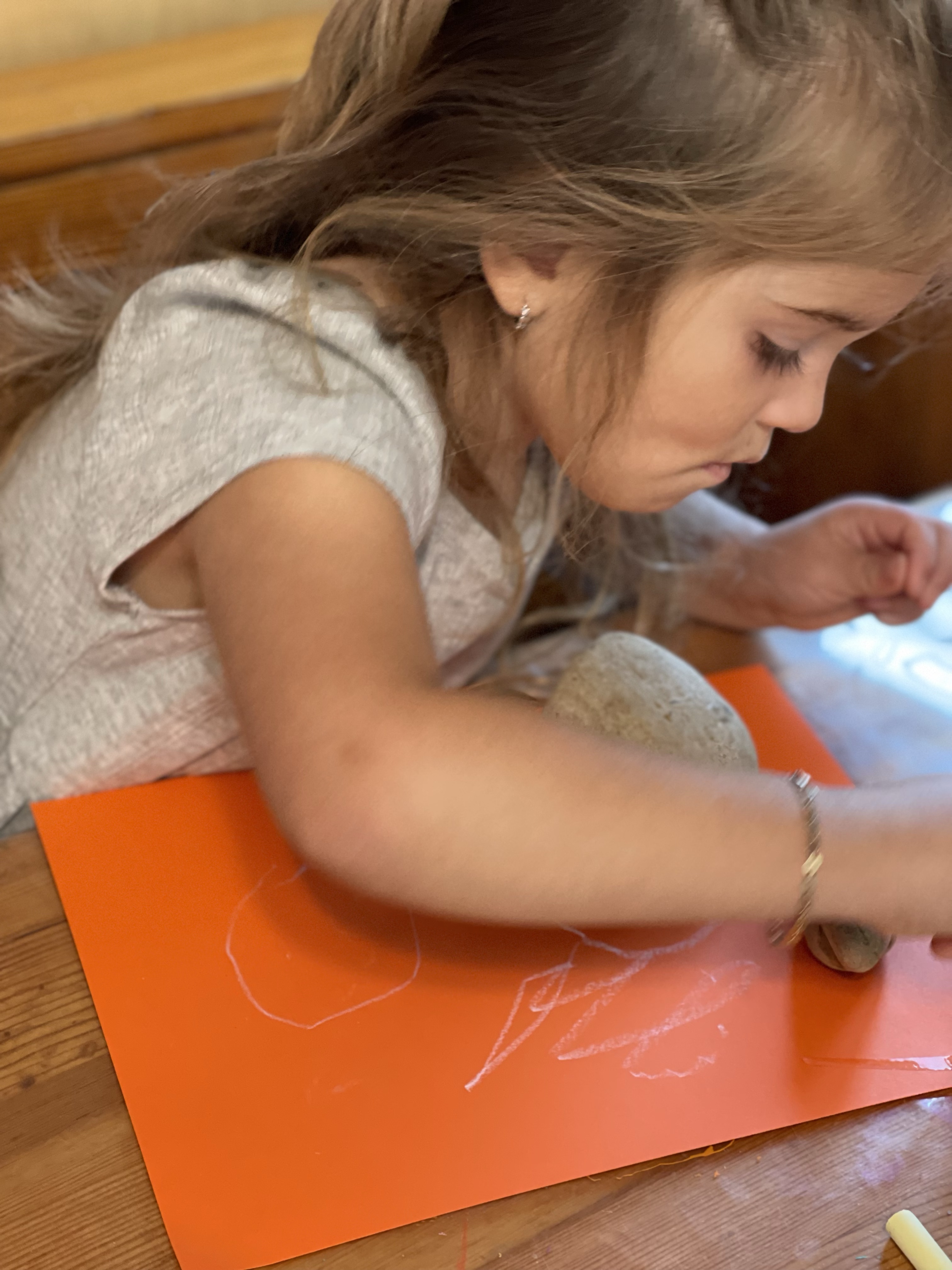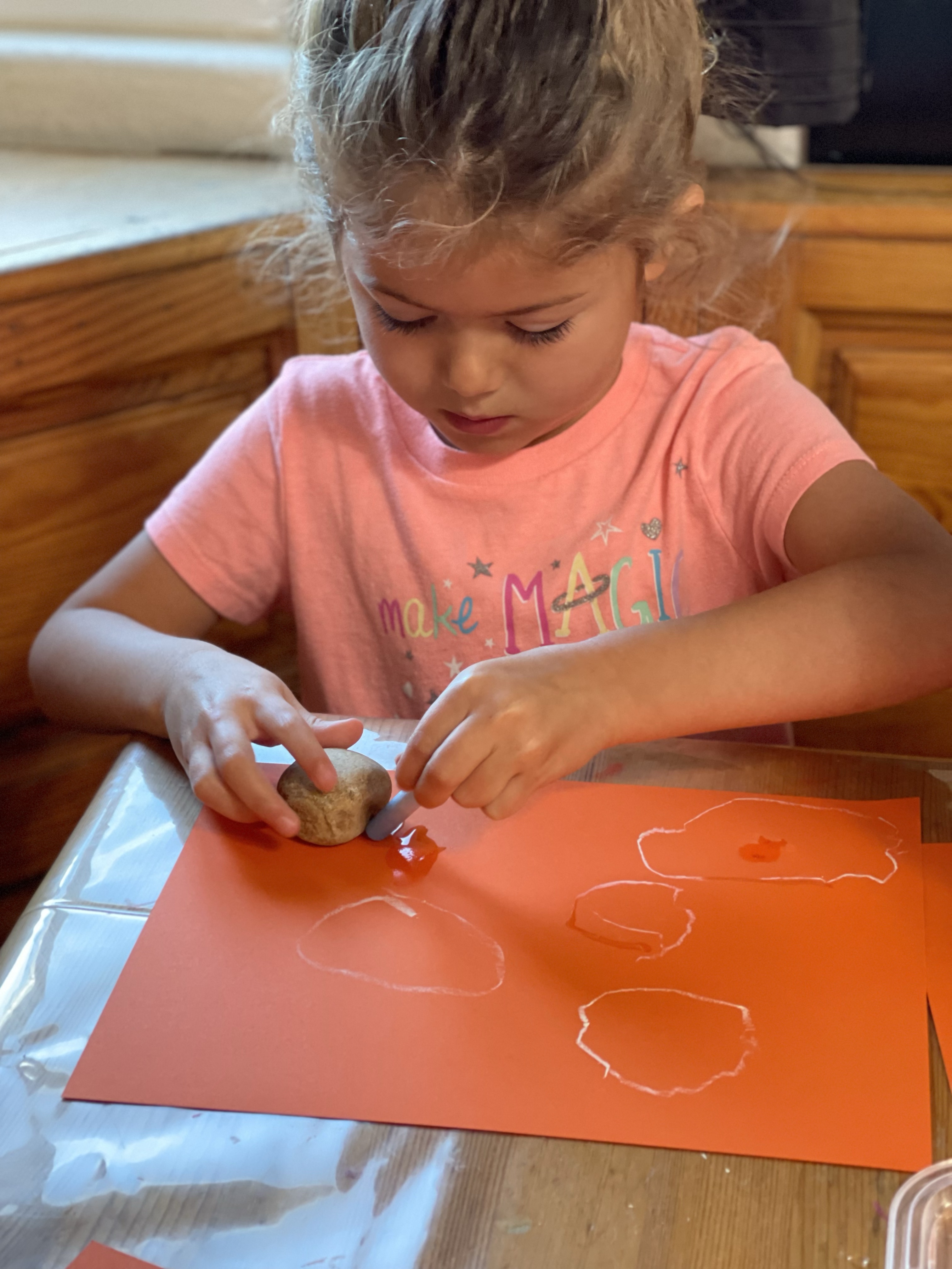 What shapes and colors are rocks? With this creative corner project, we traced rocks and gave our kids the option of coloring in their tracing when done. Some chose to leave their projects as is. They enjoyed tracing the rocks the most. What I enjoy about Experience Early Learning Curriculum is the option to change a project as we see fit or how the child chooses to complete it there is no wrong way.